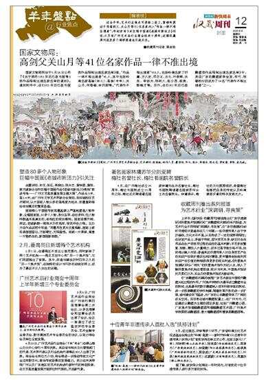 过去半年,艺术行业焦点可谓接二连三,重磅的莫过于将高剑父、关山月等41位名家列入“作品一律不准出境者”;年初亦有9米巨幅中国画《老城市新活力》问世;4月有广州艺术品行业商会迎来十周年;近期收藏周刊连发多个调研报道也引起关注。