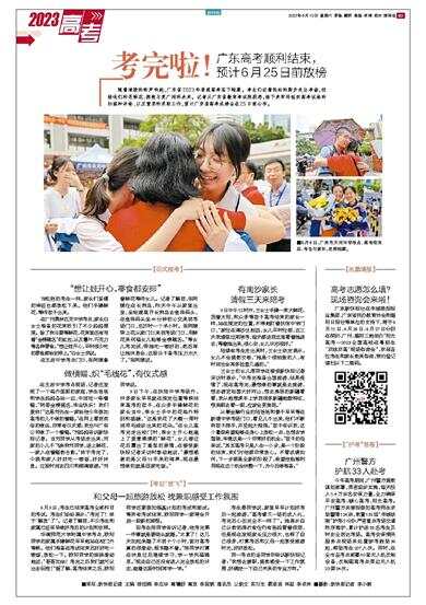 随着清脆的铃声响起,广东省2023年普通高考落下帷幕。考生们迈着轻松的脚步走出考场,迎接他们的是鲜花、拥抱与更广阔的未来。记者从广东省教育考试院获悉,接下来即将组织高考试卷的扫描和评卷,以及重要的录取工作,预计广东省高考成绩会在25日前公布。