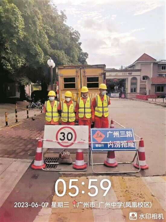 同时,天河区水务局组织挂点干部“AB角”轮班,督促现场抢险队伍实行雨前清疏、雨中清理、雨后清障的“三清”制度,确保内涝风险点排水设施正常使用、排水畅通。