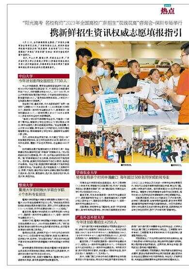 6月11日,由羊城晚报报业集团、广东省民办教育协会等单位支持,广东新快报社主办,深圳外国语学校高中园协办的“阳光高考 名校有约”2023年全国高校广东招生“双线双高”咨询会·深圳专场在深外高中园举行。