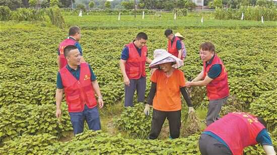 新快报记者在高崀村看到,去年冬天种下的100亩广藿香正迎来收获季节。雷大妈正在田里拔草,她说,以前种两三亩地,只够自给自足,现在把地流转出去,一年租金2400元,在基地干活每天都有工资,比以前好多了。