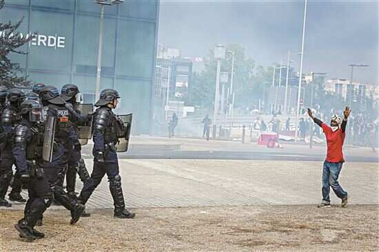 ■6月29日,在法国上塞纳省楠泰尔市,示威者与警察发生冲突。新华社发
