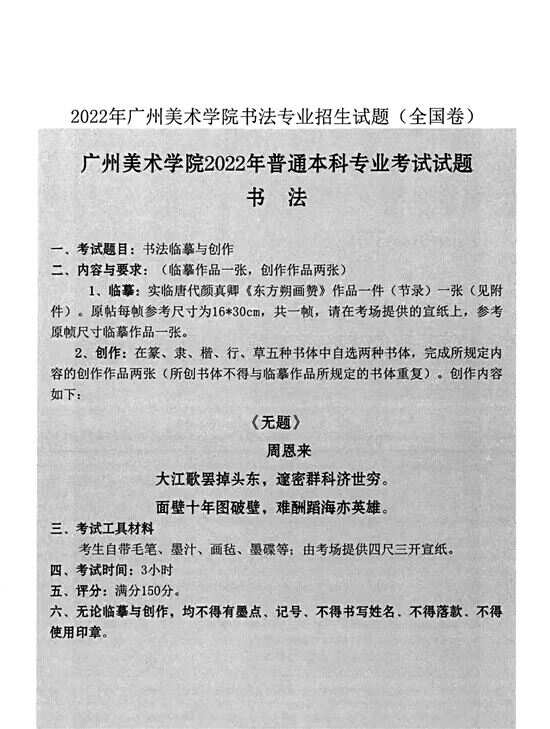 ■广州美术学院2022年普通本科专业考试试题书法(部分)