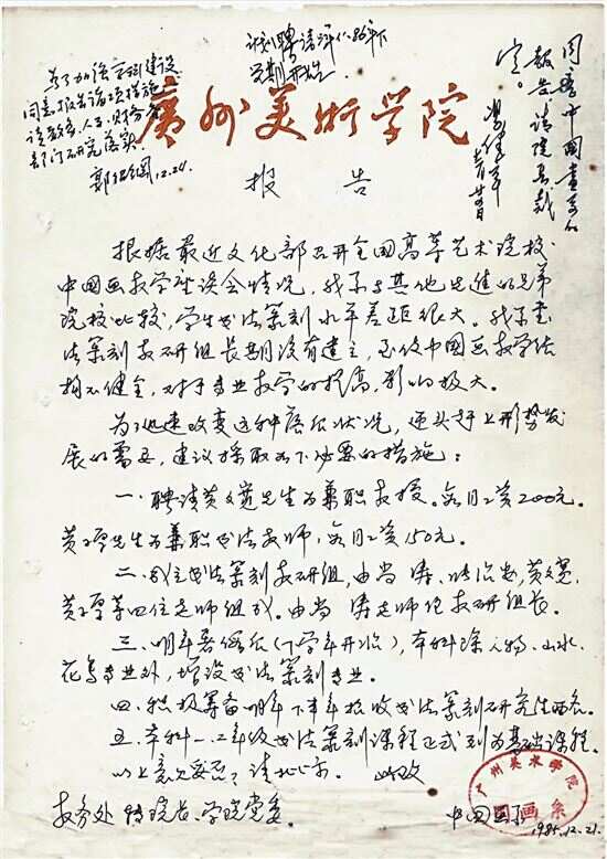 记者在1985年的一份以中国画系的名义,写给时任广州美术学院院长、学院党委的报告中可以看出,当时开设书法专业迫在眉睫,“与其他先进的兄弟院校比较,学生书法篆刻水平差距很大。我系书法篆刻教研组长期没有建立,致使中国画教学结构不健全,对于专业教学的提高,影响很大。”
