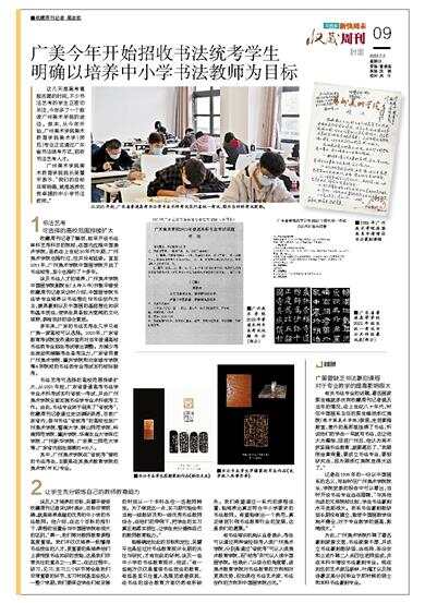 多年来,广东的书法艺考生几乎只有广美一家高校可以选择。2020年,广东省教育考试院发布通知宣布对当年普通高校书法类专业招生考试做出调整。为减少考生流动和缓解考生备考压力,广东省同意广州美术学院、肇庆学院和北京城市学院等6所院校的书法类专业考试实行校际联考。