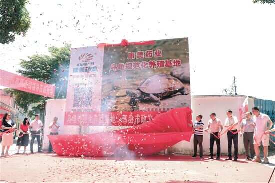 7月14日,肇庆市委副秘书长、佛山市驻肇庆市帮扶指挥部组长彭荣华,四会市委常委、大沙镇委书记何政力,佛山市禅城区驻肇庆四会市大沙镇帮扶工作队(简称“驻大沙镇工作队”)队长吕洁等一起为康美药业乌龟规范化养殖基地揭牌,同时,政文龟鳖合作社与康美药业股份有限公司(简称“康美药业”)正式签约共建。此次合作预计年采购订单突破300万元,直接提高养龟户收益约20%。