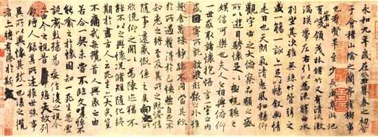蔡显良:《兰亭序》的经典化,还是有一个过程。其中离不开两位皇帝的发力,一是南朝梁武帝萧衍,二是唐太宗李世民。“龙跳天门,虎卧凤阙”,形容王羲之书法这八字名言,就是出自梁武帝《古今书人优劣评》:“王羲之书字势雄逸,如龙跳天门,虎卧凤阙,故历代宝之,永以为训。”而唐太宗李世民,则是王羲之成为“书圣”、《兰亭序》成为“天下第一行书”的最大推手。一是以皇帝之尊,亲为王羲之写传《王羲之传》,对王羲之及其书法作出这样的评价:“详察古今,研精篆素,尽善尽美,其惟王逸少乎!”二是大肆搜集王羲之真迹。三是自己经常临摹《兰亭序》,爱不释手。四是命赵模与韩道政、冯承素、诸葛贞四人响拓数本,所幸的是,李世民死后将《兰亭序》真迹一同陪葬,摹本得以传世。