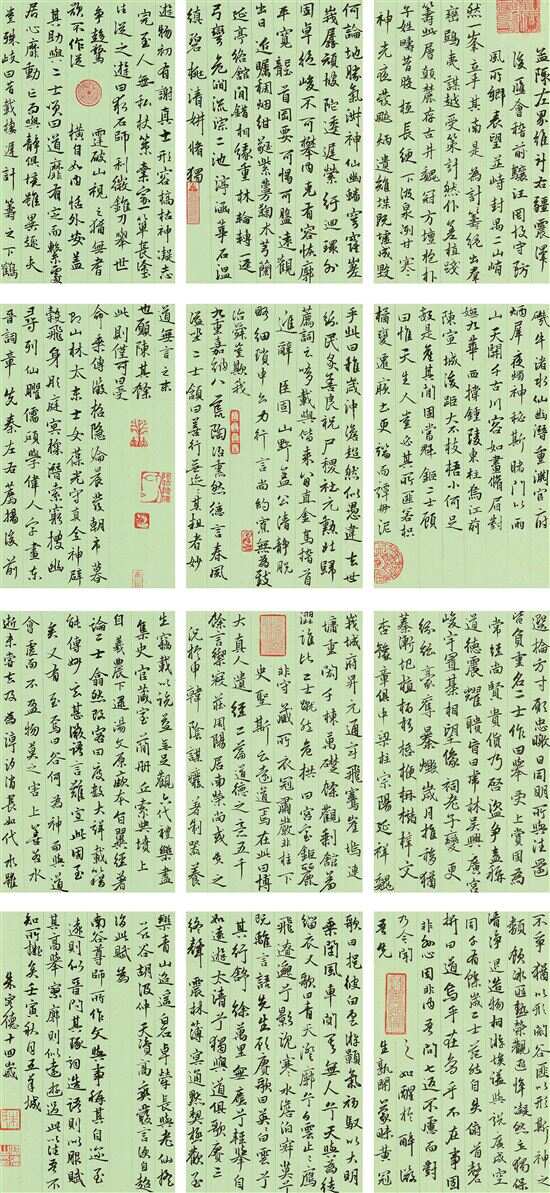 此作化手卷形式裁贴成中堂形制,巧思与精心,相映生辉。