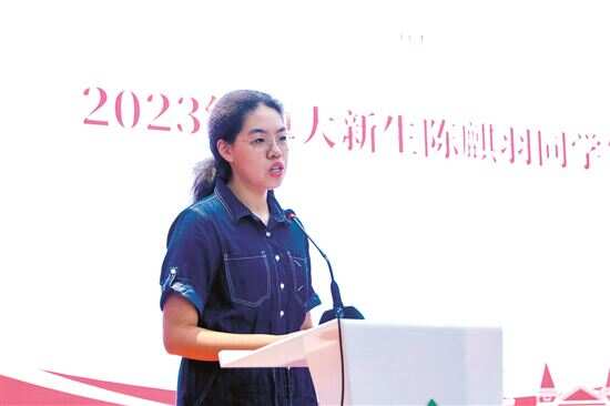 ■陈麒羽在拿到2023年中山大学全国首封录取通知书后发言。