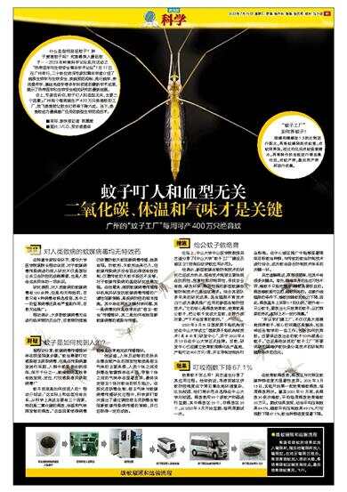 会上,专家告诉你,蚊子叮人和血型无关,主要三个因素;广州有个每周能生产400万只绝育蚊的工厂,放飞绝育蚊让蚊虫叮咬率下降六成。当下,绝育蚊成为最具推广应用的新型生物防控技术。