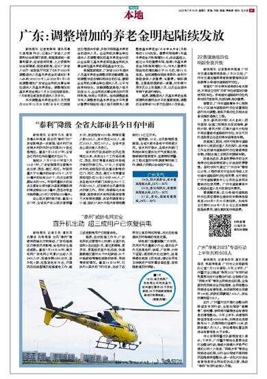 新快报讯 记者麦婉诗 通讯员粤仁宣报道 昨日,记者从广东省人力资源和社会保障厅获悉,根据国家统一部署和要求,经省政府同意、人力资源和社会保障部、财政部批准,近日广东省人社厅、省财政厅印发了《关于2023年调整退休人员基本养老金的通知》(粤人社规〔2023〕12号),从2023年1月1日起调整增加广东省企业和机关事业单位退休人员基本养老金。调整增加的基本养老金将从7月20日起陆续发放,7月底前全部发放到退休人员手中。
