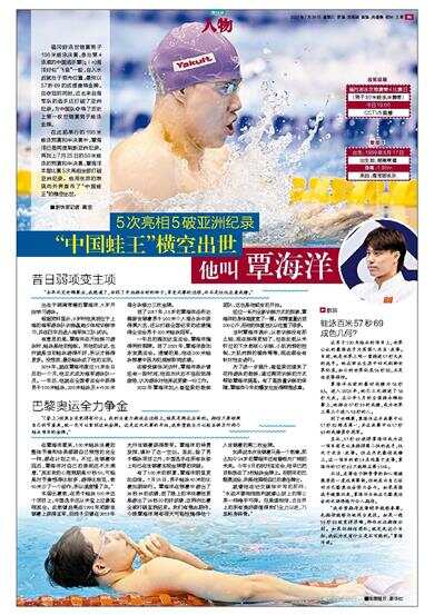 有意思的是,覃海洋在开始练习游泳时,蛙泳是他的短板。用他的话说,也许就是当初蛙泳游得不好,所以才练得更多。没想到,最后蛙泳成了他的主项。