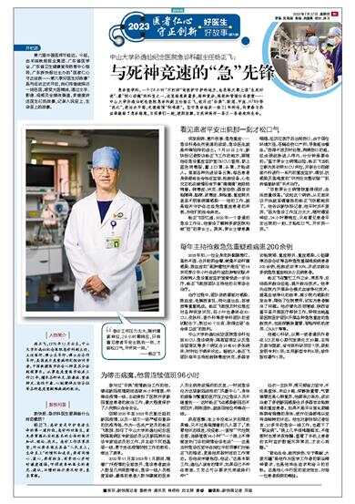 杨正飞:急诊室是守护患者生命的第一道防线,急诊科好医生,首先要掌握扎实的基本的全面的医疗知识、理论、技术。急诊工作很累很苦,所以要求医生具备“人民至上,生命至上”的情怀和追求,要有同情心、爱心,要有担当、有责任心并时时谦虚谨慎,听得进其他医生的意见、建议,不懂的地方要及时学,直至掌握。