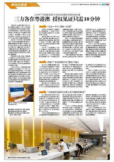 同样,广州法院还将涉港澳授权见证通融入立案前端,解决涉外、涉港澳案件授权见证问题。澳门律师邝玉球在内地执业代理的首宗民间借贷纠纷案件中,当事人位于香港,律师身处澳门,法官则在广州南沙,三方通过“AOL授权见证通”平台,用时不到10分钟,便完成了当事人委托律师代理案件手续。