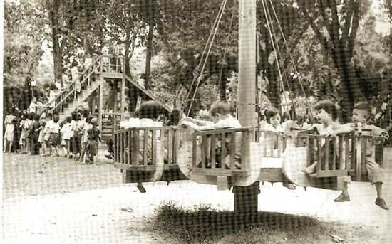 位于公园东南角的儿童游乐场,可以看看半个世纪前的广州小朋友都玩些啥:有浪桥、木马、秋千、网架、轩辕架,这些场景都是按20世纪50年代的老照片还原的。