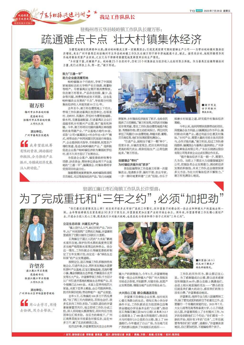 驻湛江廉江市石角镇工作队队长许望喜:为了完成重托和“三年之约”,必须“加把劲”