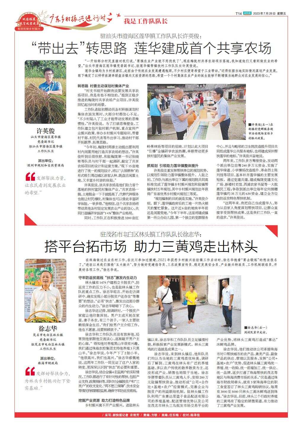 驻汕头市澄海区莲华镇工作队队长许英俊:“带出去”转思路 莲华建成首个共享农场