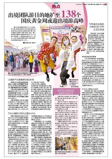 《报告》显示,国庆黄金周出境游将以团队游为主要形式,预计将出现两波出发高峰,第一波为9月23日-26日出发的出境长线游客,出行天数集中在10-14天;第二波出现在中秋节正日后两天,即9月30日、10月1日,以5-8天的中长线出境游目的地为主。