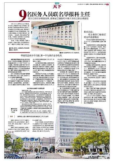 针对此次医院内部的举报风波,8月9日下午,记者来到湘雅三医院了解情况。
