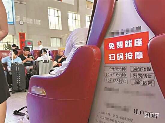 有旅客表示,共享按摩椅上写着“免费入座,扫码按摩”字样,收费从最低8.8元到最高30元不等,虽然也可以不付费就坐上去,但有时候看上去不够干净卫生,而且不进行按摩消费的时候,按摩椅坐着颇不舒服,就宁愿站着或坐地上。