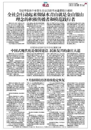 据新华社电 国家统计局15日发布数据显示,7月份,国民经济持续恢复,生产需求基本平稳,就业物价总体稳定,发展质量稳步提升,但部分主要指标增速有所放缓,国内需求仍显不足,经济恢复向好基础仍待加固。