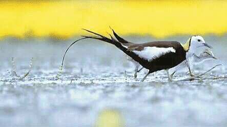 ▲在云南保山青华海国家湿地公园,水雉“奶爸”被拍摄到正带着孩子们觅食。