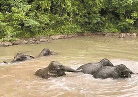 前不久,在云南普洱,一群野生亚洲象被拍摄到在河里洗澡戏水、降温解暑;