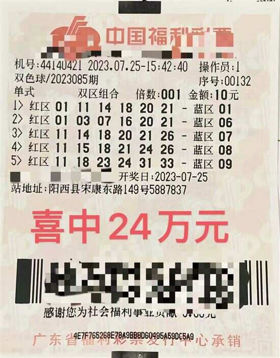 新快报讯 记者陆妍思 通讯员郑惠文报道 双色球第23085期开奖中,阳江市阳西县宋康路149号44140421福彩销售站点喜中1注二等奖,单注奖金为24.4万元。近日,中奖者覃女士(化名)来到阳江市福利彩票中心办理兑奖。