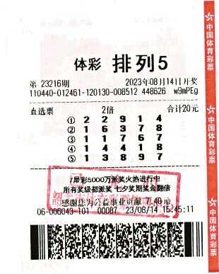 新快报讯 记者陆妍思 通讯员朱嘉颖报道 最近,韶关一位购彩者中出了排列5大奖20万元,不过他的购彩经历颇为曲折,甚至曾被实体店老板娘“劝退”,究竟是什么情况?