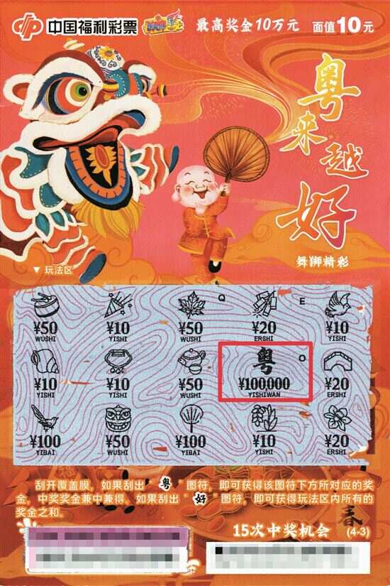 福彩刮刮乐“粤来越好”自上市以来,中奖喜讯接连传出,目前佛山已有13位幸运购彩者收获“粤来越好”头奖。在佛山市禅城区44130147福彩销售站点,幸运儿小杜(化姓)凭借2张“粤来越好”收获了佛山第14个“粤来越好”头奖,奖金10万元。兑奖后他开心地说:“福彩刮刮乐,票面颜值在线,玩法新奇多样,不论中奖与否、奖金多少,随手公益是我们购彩者的快乐源泉。当然,如果还能与大奖撞个满怀,那自然是快乐加倍,惊喜连连!”