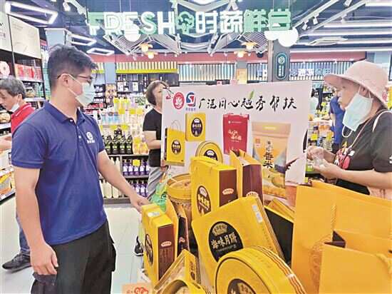 近日,新快报记者发现,广州对口帮扶协作湛江驻赤坎区工作队在越秀区辖内多个商超设立湛江特色产品专区专柜,举办多种形式的线上线下推介展销活动,为赤坎乃至湛江的特色产品广开销路,助力乡村振兴。