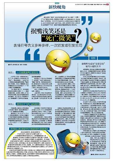 “死亡微笑”是什么?其实就是微信所有表情中的第一个——普普通通的笑容。在很多人看来,这个经常使用的表情,没有任何侮辱或者讽刺的意味。但小刘认为,年轻群体中这个表情被赋予了某种不好的寓意,甚至意味着嘲讽。