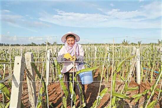 改种更高产值的品种,在北港村的北赛村已先行一步。北赛村种植火龙果约1200亩。2022年,帮扶单位中科炼化投入40万元在北赛村建设火龙果种植示范基地25亩,打造“产业+品牌+消费”帮扶模式,助力硇洲岛产业振兴。