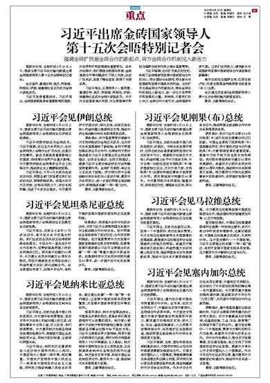 习近平指出,相同的历史遭遇和奋斗经历使中国和非洲心心相印。中国坚持大小国家一律平等、相互尊重。中国共产党领导中国人民走出了一条具有中国特色的社会主义道路,同时努力推动构建人类命运共同体,通过提出共建“一带一路”等一系列倡议,让发展中国家实现共同发展繁荣,为发展中国家争取更加平等的权利。