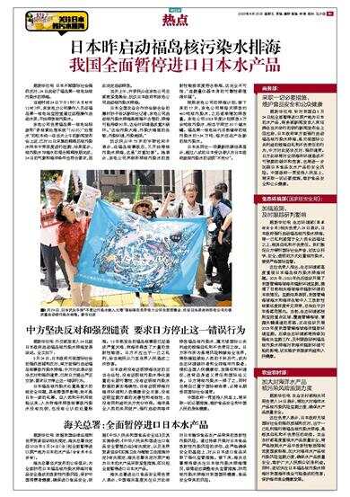 这位负责人表示,日本政府无视国际社会的强烈质疑和反对,出于一己私利强行将福岛核污染水排海,是极其自私和不负责任的举措。农业农村部高度重视水产品质量安全,将严格按照水产品中放射性物质限制浓度国家标准,加大对海洋水产品核污染风险监测力度,确保水产品质量安全,维护广大人民群众切身利益。同时,密切关注日本福岛核污染水排海对我国海洋渔业可能造成的危害,保护海洋渔业健康发展。
