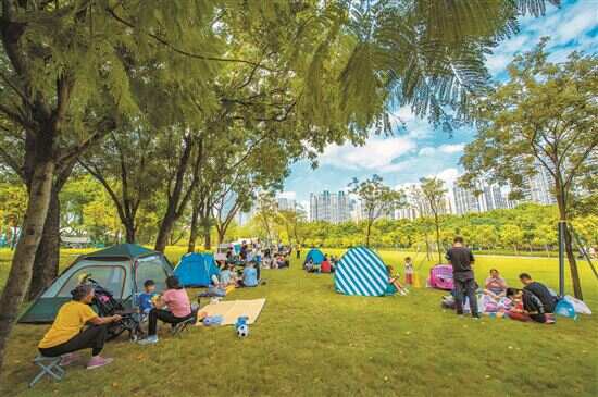 亲近自然是每个人刻在基因里的追求。钢筋水泥的城市虽不乏绿色,但满眼翠绿多是“可远观而不可亵玩”的状态。为了满足市民的新需求,创造宜居宜游的美好休憩空间,2022年元旦,广州公园绿地草坪开展帐篷区试点,在有条件的公园划定专门区域供市民游客搭设帐篷。第一批推出24个公园绿地帐篷区域,受到广大市民游客的热捧和赞誉。每逢节假日,众多市民偕老带幼,带着帐篷、美食,到公园享受阳光与绿色。
