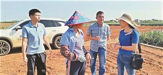 对于有半劳动能力的脱贫户家庭,梁杰雄也和队友们一起出谋划策,开展针对性帮扶增强他们的“造血”能力。陈思英一家便是其中之一。2021年,陈思英的丈夫遭遇交通事故受伤,她本人身患二级残疾干不了重活,家里4个孩子尚年幼,还在读书。一场意外让这个本就不富裕的家庭雪上加霜。“考虑到她平时还可以做些种养的工作,我们就介绍她到镇上的现代农业产业示范园学习辣椒种植技术,增加收入。”驻前山镇工作队还在示范园帮陈思英一家申请了辣椒苗、肥料等农资。“陈大姐很感恩,常想给我们带自家种养的菠萝和土鸡等,我就说‘这都是我们应该做的,没帮到忙才是不应该’。”梁杰雄说。