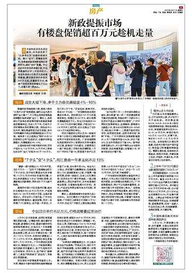 8月虽然经历年内成交新低,但月底迎来了“认房不认贷”的新政提振市场。踏入“金九”,借着新政利好,各楼盘或紧急推新或推出各种折扣,趁机“放价”走量。中心区的项目多启动渠道引流,而远郊楼盘则以折上折拉动成交。有去年总价570多万元起的海珠楼盘,最近推出特价房低至447万元起,优惠超百万元;增城个别项目单价调整至万元以下,优惠力度一再加大。
