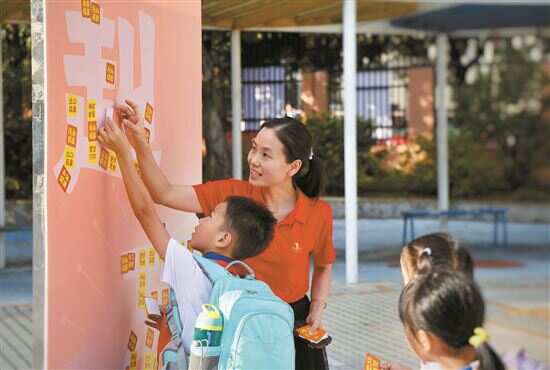 开盲盒、寻宝藏、刮刮乐、能量石……在广州市天河区辰康幼儿园,丰富多彩的形式为新学期的开启增添了别样的乐趣。但给孩子们带来最大惊喜的,还是由往届毕业生设计的“健康”开学纪念章。“这个寓意很好,纪念章又特别有意义,还有传承感,挺感动的!”一位家长告诉记者,看到孩子们手拿“健康”纪念章的惊喜表情时,自己都觉得要泪目了。此外,学校还准备了特别的许愿场地,孩子们可以提笔将希冀与展望画在能量石和愿望蛋上,赋能每一天,直到实现的那一刻。