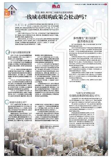 值得关注的是,自8月底以来,优化甚至是全面取消限购成为越来越多城市的选择,尤其是二线城市,沈阳、大连全面解除限购,南京取消核心四区限购,天津调整外围区域限购政策。在业内人士看来,下一步全国范围内更多城市完全取消限购将是一个趋势。