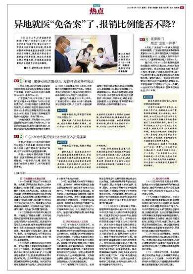 目前,广东有18个地市实行临时外出就医人员免备案,其他地市的参保人在线上进行简单的“承诺制”备案,也可以实现异地就医直接结算。