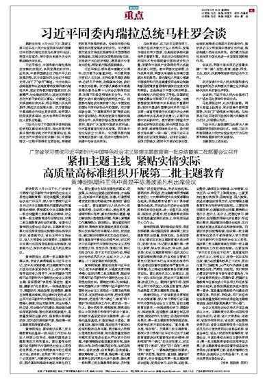 姚增科指出,广东省委坚决贯彻党中央决策部署,深入学习贯彻习近平新时代中国特色社会主义思想,紧扣主题教育总要求,一体推进理论学习、调查研究、推动发展、检视整改、建章立制各项措施,规定动作扎实到位,自选动作有特色亮点,第一批主题教育取得明显成效,探索形成多方面经验做法,“重点重、亮点亮、特点特”。开展第二批主题教育,要深入学习贯彻习近平总书记关于主题教育重要讲话和重要指示批示精神,深刻领悟“两个确立”的决定性意义,切实增强“四个意识”、坚定“四个自信”、做到“两个维护”。一要准确把握目标要求,按照“学思想、强党性、重实践、建新功”总要求,充分借鉴运用第一批主题教育成功经验,坚持边学习、边对照、边检视、边整改,确保在以学铸魂、以学增智、以学正风、以学促干上取得实效。二要更加注重分类指导,因地制宜、因人施策,改进完善组织指导方式,切实增强主题教育的针对性科学性实效性。三要坚持问题导向,认真解决突出问题,聚焦群众急什么、愁什么、盼什么,把理论学习、调查研究、检视整改同强化宗旨意识、呼应群众需求、推动解决问题结合起来,实打实地研究提出思路办法和政策举措。四要切实抓好统筹衔接,组织第一批主题教育单位党员干部持续深入学习贯彻习近平新时代中国特色社会主义思想,搞好第二批主题教育单位同第一批主题教育相关工作的有效衔接。五要坚持“学习的目的全在于应用”,高度重视防止形式主义、官僚主义,坚持一切从实际出发,着力在质量和效果上下功夫,更加注重开门搞教育,以严实作风确保主题教育政治性、严肃性、实效性。我们将努力落实好指导者与参与者双重角色,与广东省委同向发力、同题作答,把搞好主题教育与全面完成今年各项工作任务紧密结合起来,坚持发展是党执政兴国的第一要务、高质量发展是现代化建设的首要任务,两手抓、两促进,用广东经济社会高质量发展的实际成果检验主题教育成效,画好更新更美最大“同心圆”。