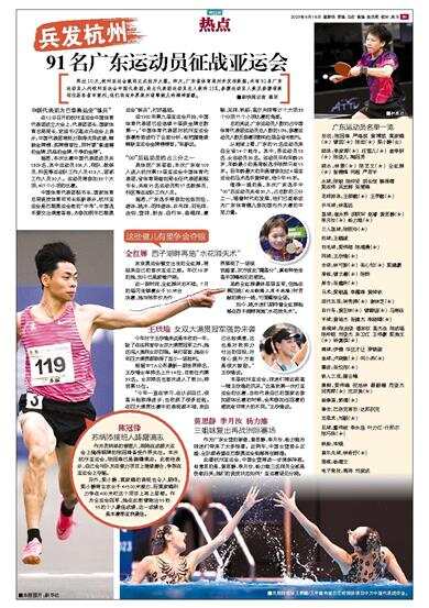 再过10天,杭州亚运会就将正式拉开大幕。昨天,广东省体育局对外发布数据,共有91名广东运动员入列杭州亚运会中国代表团,约占代表团运动员总人数的10%,参赛运动员人数及参赛项数均位居各省市前列,他们将向外界展示南粤健儿的精神面貌。
