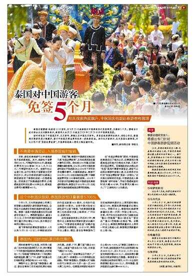 该时间包括了中国国庆节、元旦新年、寒假以及中国农历新年。多家在线旅游网站表示,消息公布后,泰国相关搜索热度大幅飙升,预计中秋国庆黄金周将迎来一波赴泰客流。旅行社方面表示,此次免签比较彻底,对比以往只是“免签证费政策”,中国游客赴泰入境将大幅压缩时间。