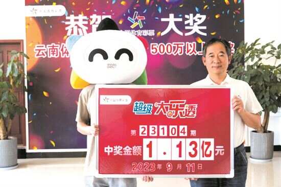 9月9日,体彩超级大乐透第23104期开奖,全国共中出22注一等奖,其中云南省玉溪市中出的10注1135万余元,追加投注一等奖全部出自同一家体彩实体店,中奖彩票为一张经10倍投注的单式追加票,单票擒获奖金1.13亿元