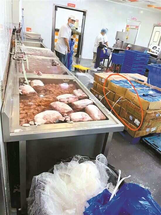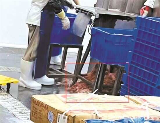 9月19日上午,广州市黄埔区天誉小学家长代表前往多满分位于天河区的“多满分中央大厨房”参观,一名家长在非企业安排参观的区域拍下多张照片上传网络,并表示多满分中央大厨房现场有肉类垂落至地板,有保质期为12个月的精制鸭边腿、白菜猪肉饺,以及黑椒T骨猪扒等速冻生制品。