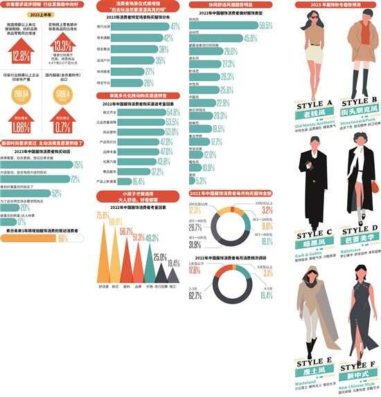 国家统计局、艾媒咨询《2022-2023年中国服饰行业发展与消费趋势调查分析报告》、巨量算数&算数电商研究院《2023抖音趋势赛道风向标|服饰专刊》、天猫《2023Tmall天猫服饰行业秋冬趋势白皮书》、行行查《2023年中国服装行业研究报告》、京东服饰、唯品会、小红书、百度指数