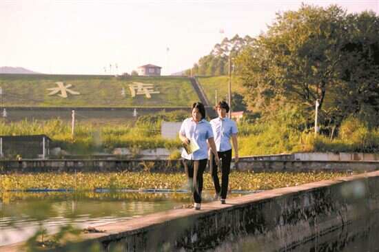 ■邮储银行广州市分行客户经理走上鱼塘堤坝,打通金融服务“最后一公里”。