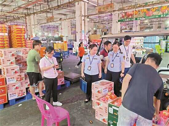 工作人员检查辖区食品批发市场。