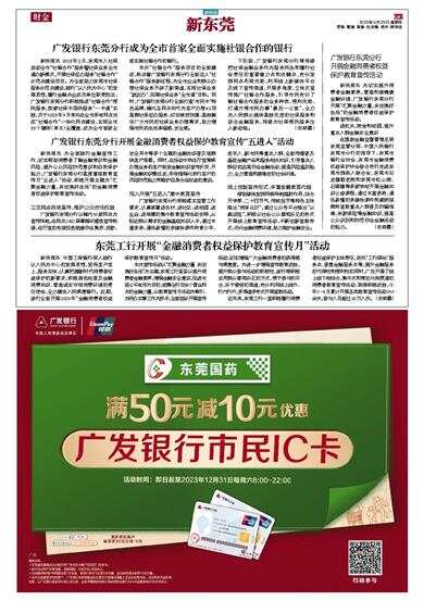 新快报讯 2023年2月,东莞市人社局启动全市“社银合作”服务暨社保业务全市通办新模式,开展社保经办服务“社银合作”示范点建设项目。为全面助力东莞市社保服务示范点建设,践行“以人民为中心”的发展思想,履行金融央企成员单位职责担当,广发银行东莞分行积极推进“社银合作”便民服务,探索社保卡居民服务“一卡通”实践,并于2023年9月率先在全市所有网点完成“社银合作”一体化网点建设,实现全市33个镇街(园区)全覆盖,成为全市首家全面实施社银合作的银行。